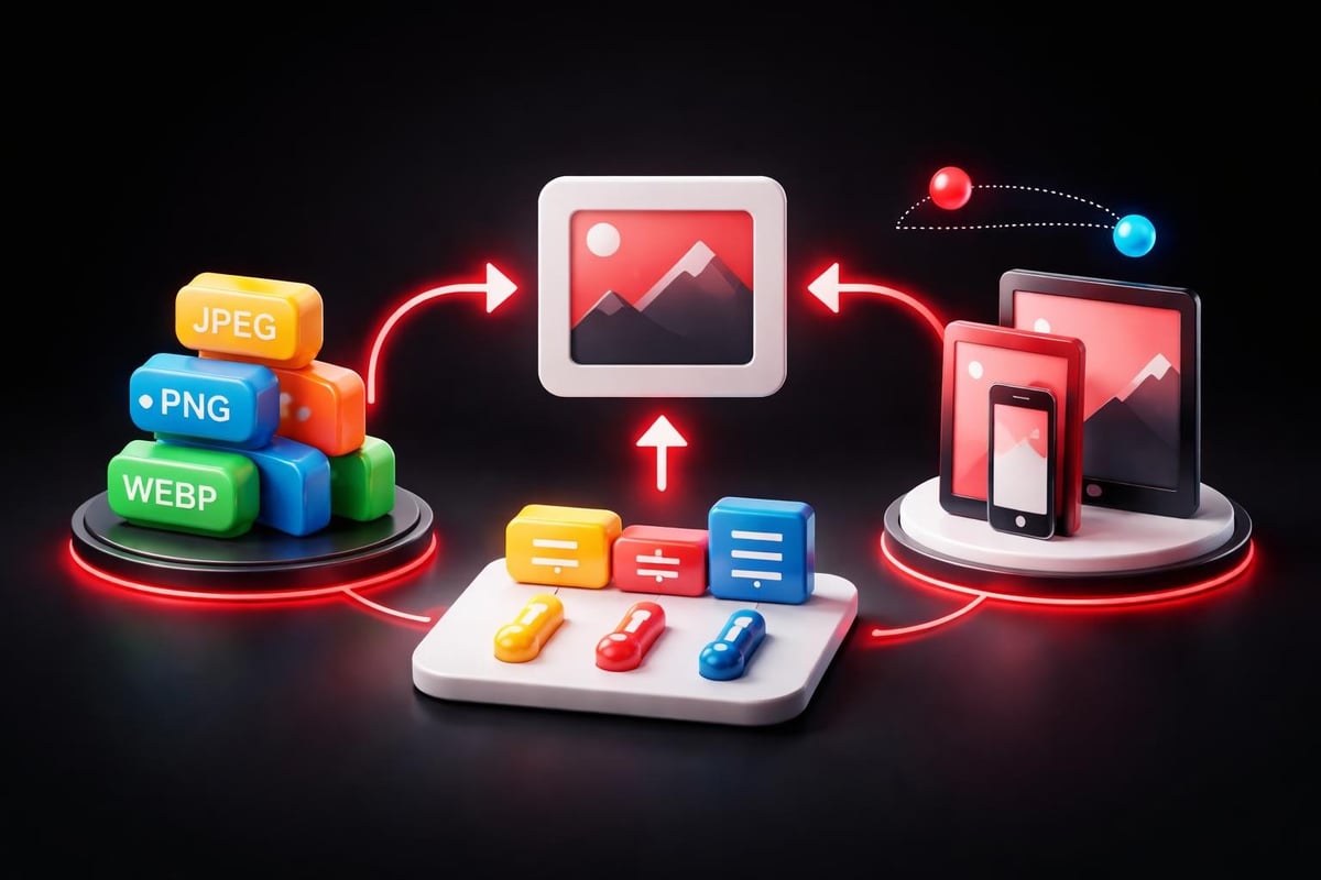 Always serve modern formats (WebP/AVIF) with JPEG fallbacks. Use srcset and picture elements to deliver appropriate resolutions for different screen sizes. A 4K image on a mobile screen wastes bandwidth and slows rendering.